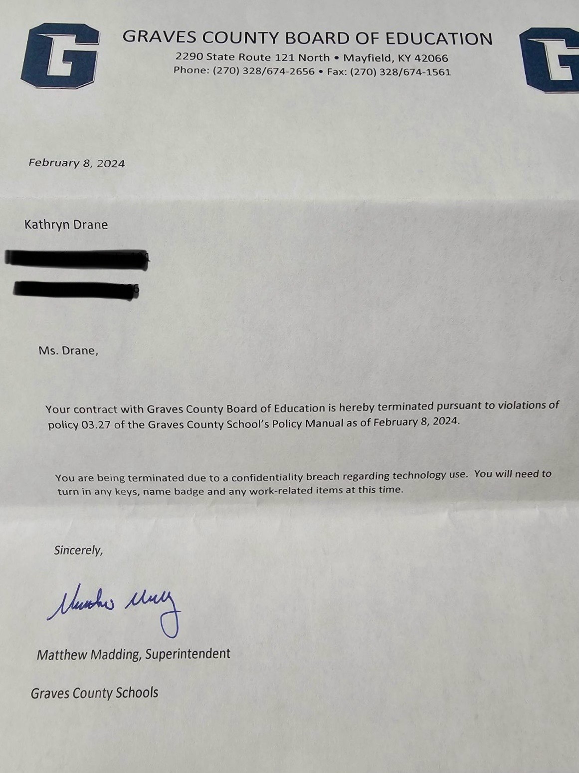 Cunningham’s report made me angry, but was also validating. My gut was right. In April 2024, I learned that Cunningham was no longer employed with Graves County Schools.